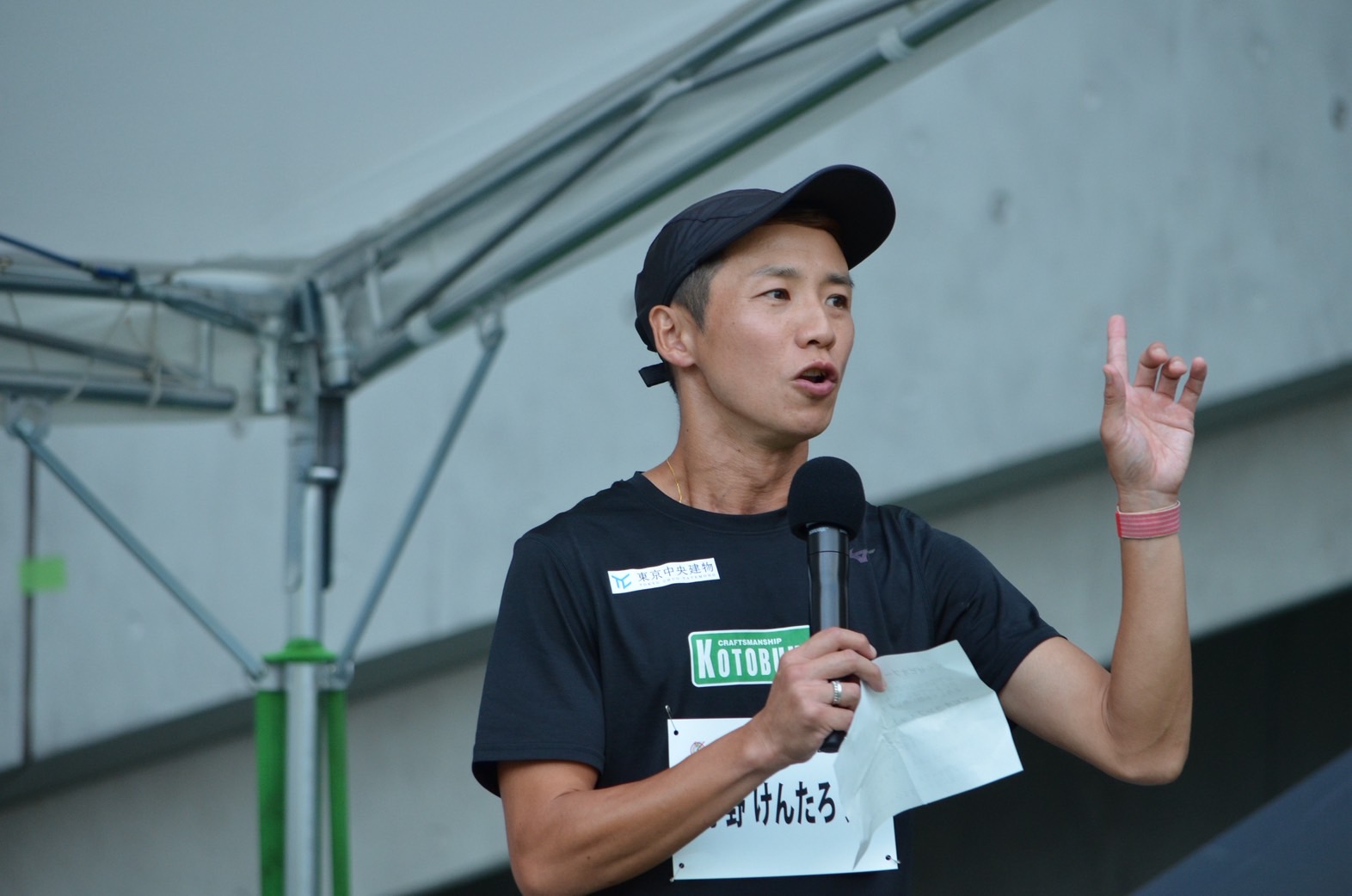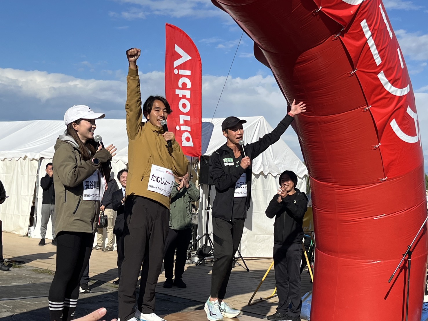強風の中、15kmを走り切った後はマイクを握り、過去最多エントリーの大会を笑顔で盛り上げました!