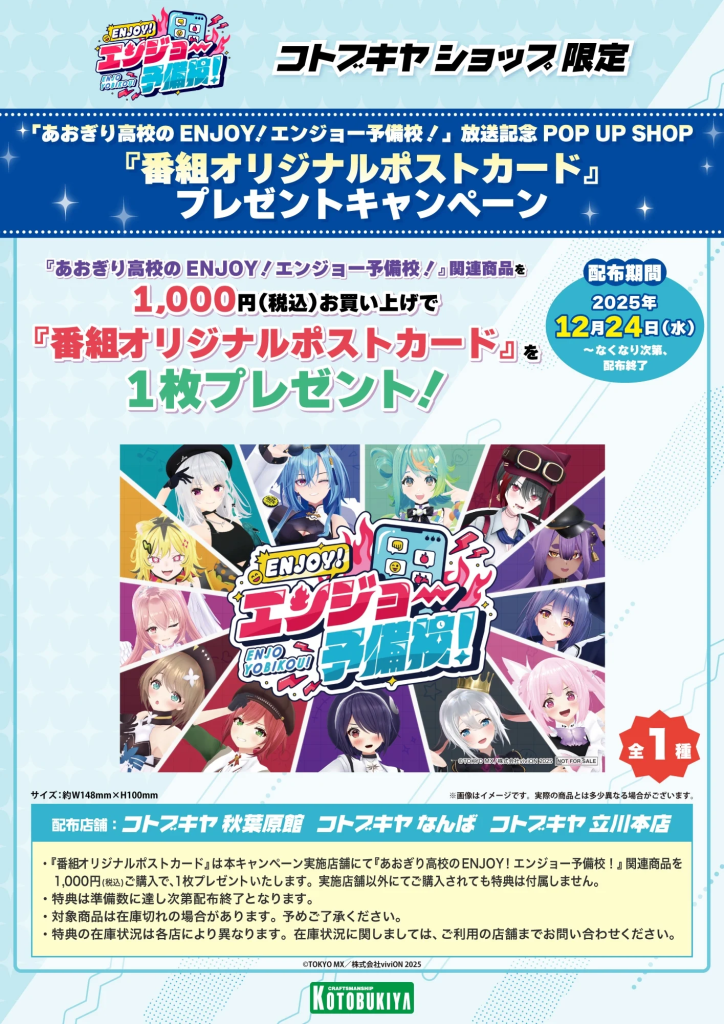 あおぎり高校【エンジョー予備校POPUP】グッズ発売&『番組オリジナルポストカード』プレゼントキャンペーン