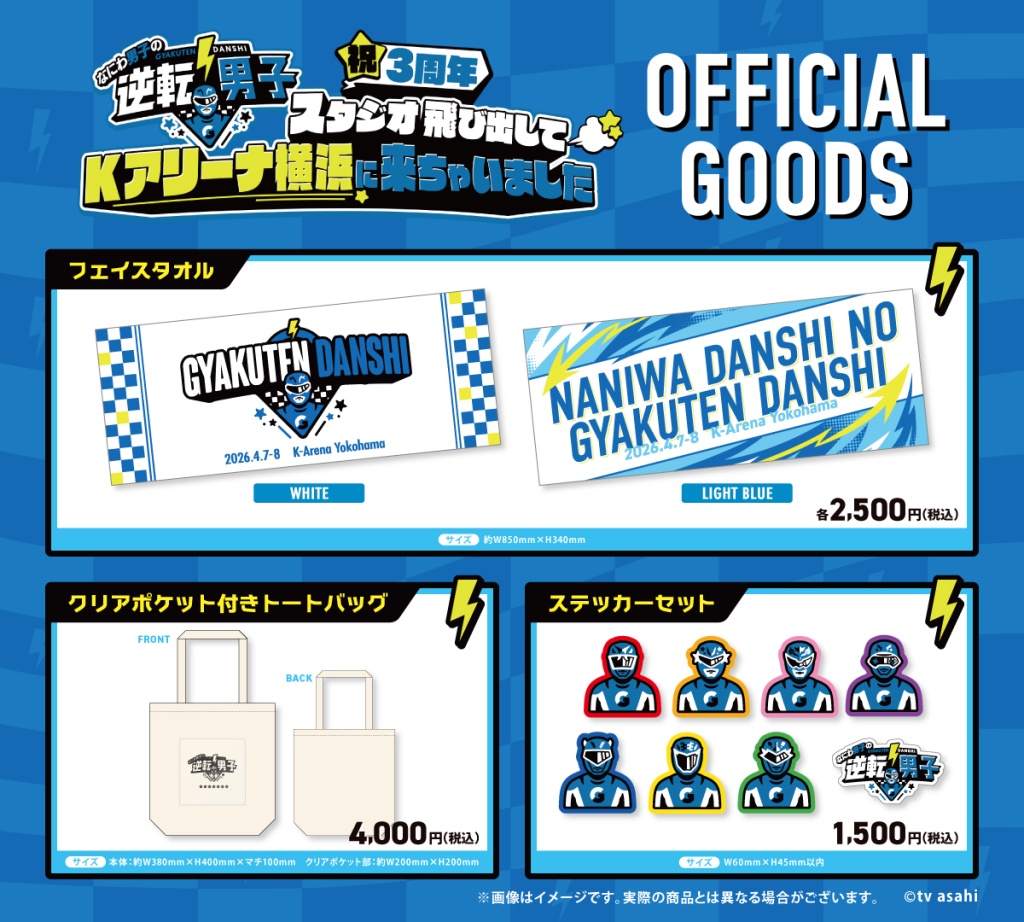 株式会社壽屋は、株式会社テレビ朝日(以下「テレビ朝日」)が放送する人気バラエティ番組「なにわ男子の逆転男子」初のイベント「なにわ男子の逆転男子 祝3周年 ~スタジオ飛び出してKアリーナ横浜に来ちゃいました~」オフィシャルグッズを制作いたしました。